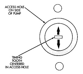 - If the timing pin is not engaged, remove the timing pin, reverse the timing pin and insert it into the “pump timing pin tooth”
