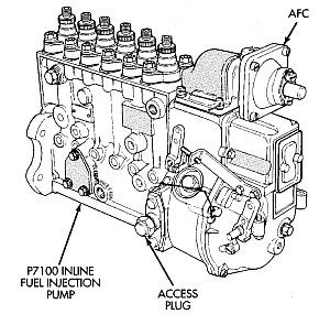 Priming: The MW, A, and P fuel injection pumps are equipped with an engine-side fuel return line. The return fitting is a spring-loaded overflow valve that maintains pressure in the injection pump fuel galley.