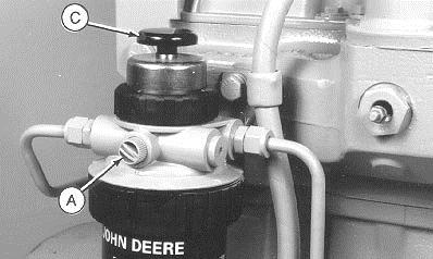 - Open the bleeder screw on the secondary filter (if equipped) and operate the hand primer to bleed the air from the system.
