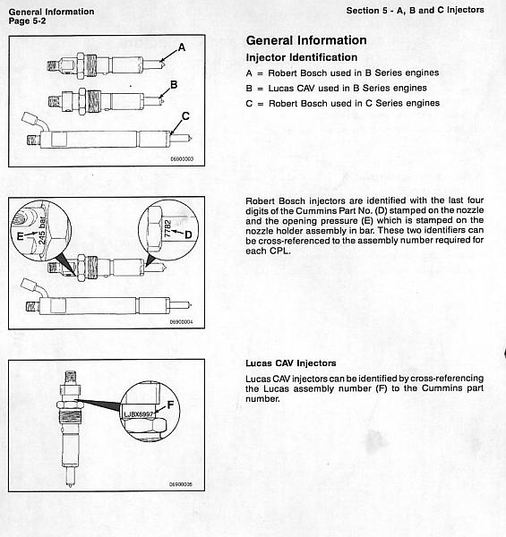 Injectors may only have the type code, not the part number. With all the numbers on the injector, we may be able to identify exactly what you have. Or we may only be able to narrow it down to 5-10 different part numbers. 4 digits, 3 digit and 2 digit alpha-numeric stamping can help identify injectors. Please get all the part numbers off the injectors.