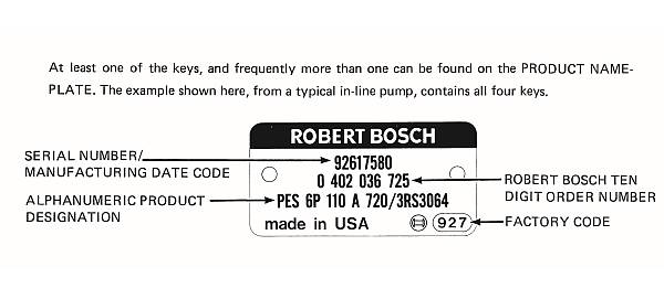 Bosch, Zexel or Denso Injection Pump Model Number Tags