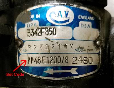 If your pump has a set code, we will need the information off the nameplate to properly calibrate the injection pump.