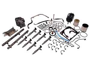 Complete fuel contamination kit solution. Kit contains: High pressure injection pump, Injection pump gasket, 8 – injectors, HFCM, fuel cooler, fuel filters, injection lines, gasket and more.