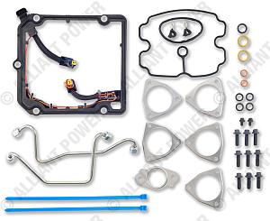 Pre-2010 emission engines. Installation kit for high pressure pump. Kit includes turbo gaskets and pump cover gasket with wiring.