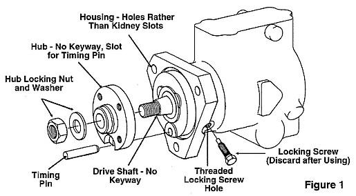A new drive hub with a slot designed to accept a timing pin but without a key way on the tapered inside diameter allows accurate location of the hub on the drive shaft during the timing procedure.